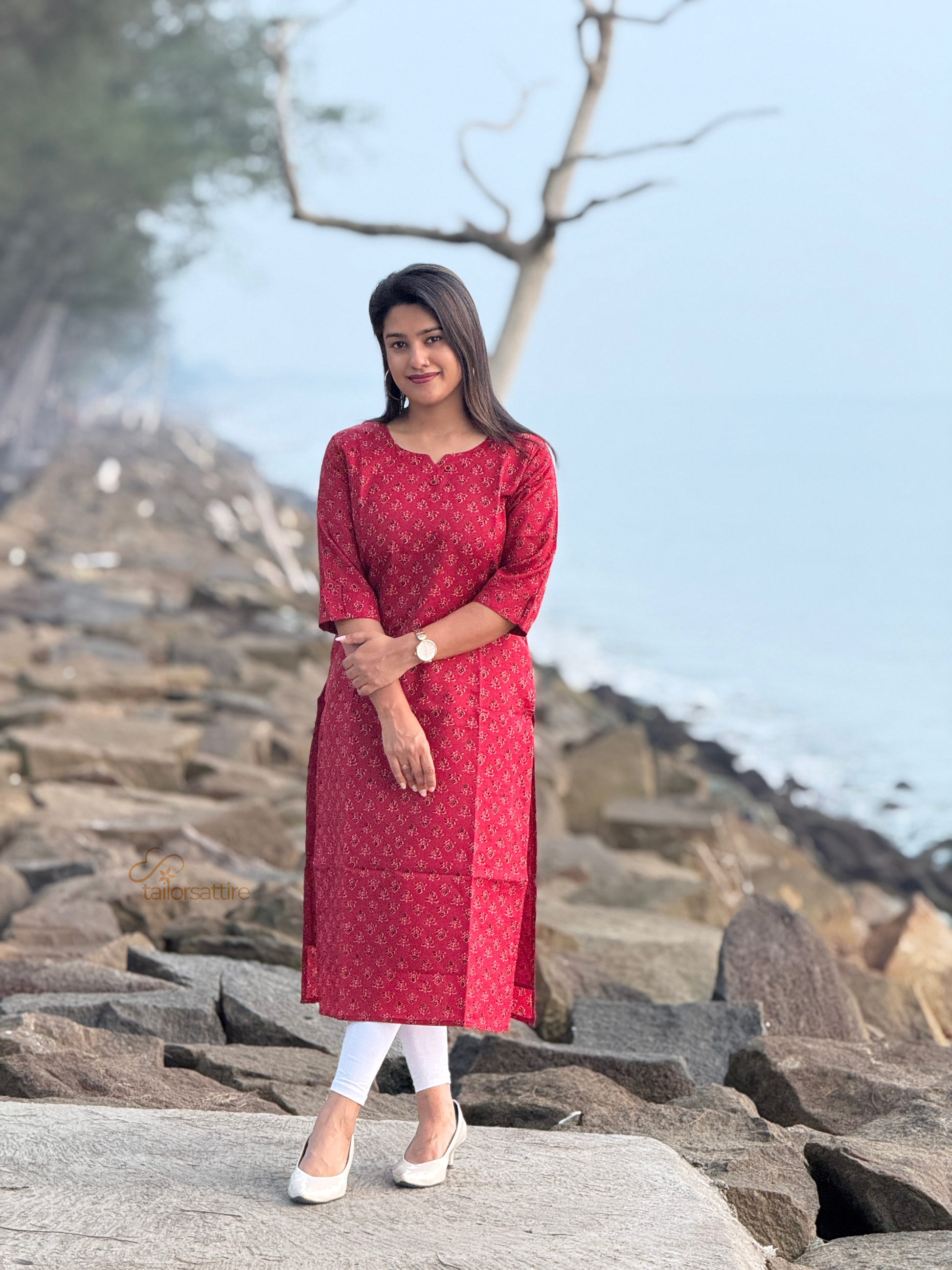 Elevate your everyday wardrobe with this stunning red polycotton kurti, thoughtfully designed to blend comfort with timeless style. The rich red base is beautifully complemented by elegant black and cream patterns that add sophistication and visual interest to your look. Crafted from a durable polycotton blend, this kurti offers the perfect balance of breathability and easy maintenance, making it ideal for casual outings.